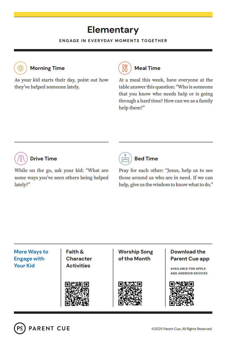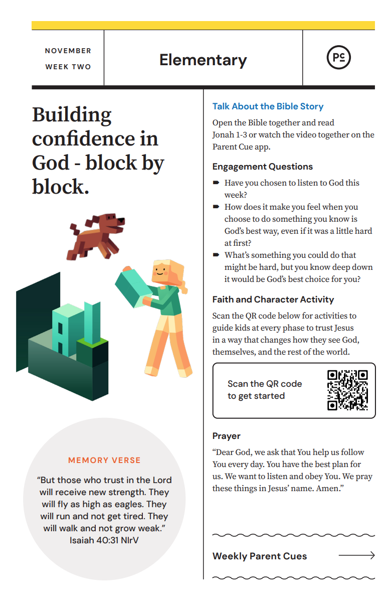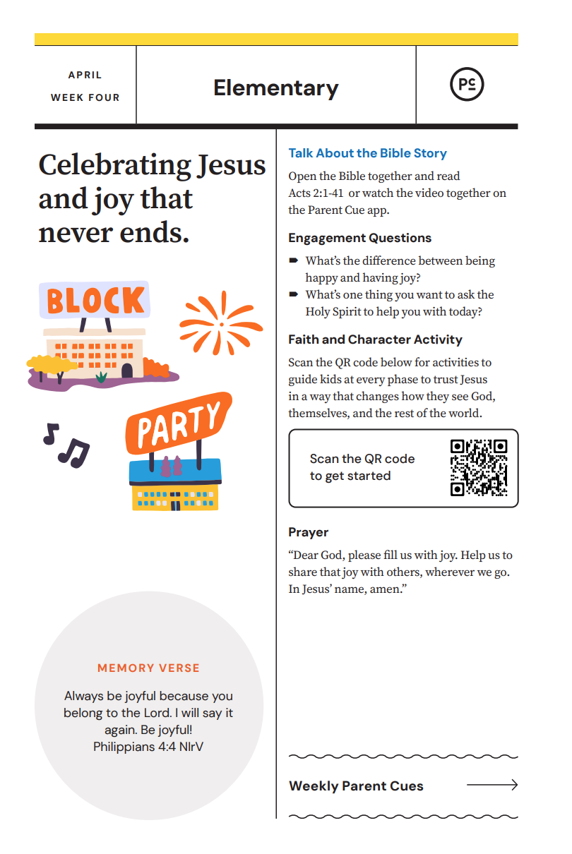 In elementary, each month we focus on a concept or virtue that relates to our relationship with God and others! The activities and object lessons each week will help kids in practical way to carry out the monthly concept or virtue in their daily lives. Our goal is to encourage kids to have the kind of relationship with God that results in showing His character to those around them!