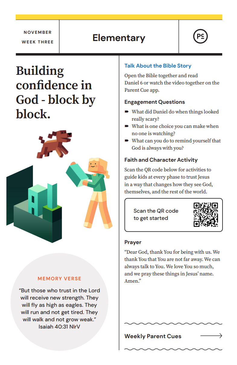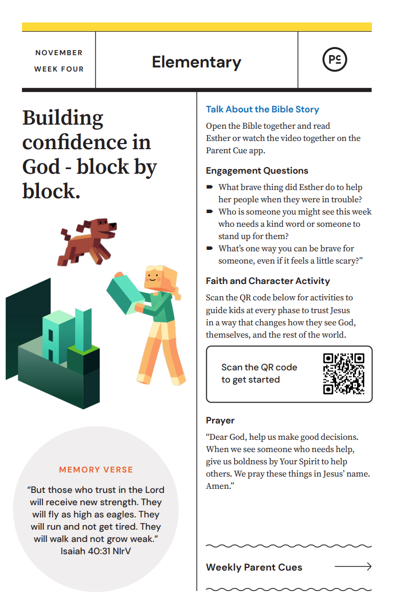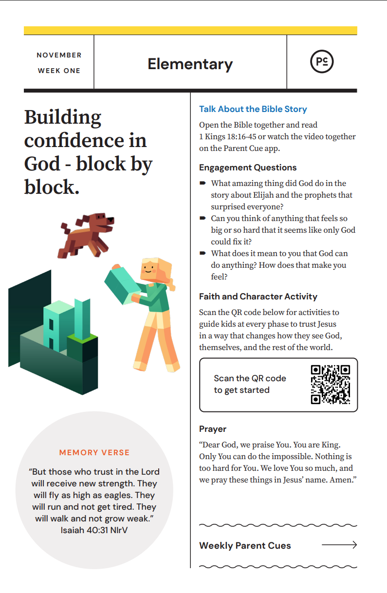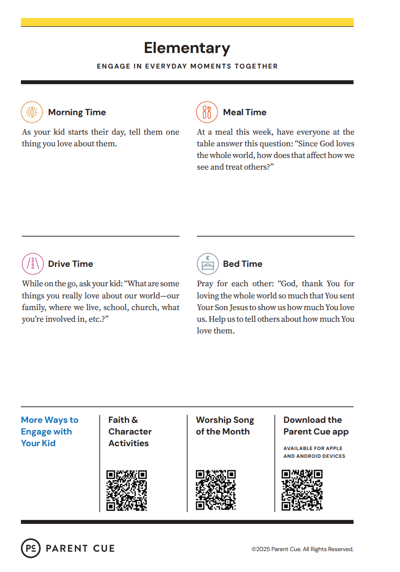 In elementary, each month we focus on a concept or virtue that relates to our relationship with God and others! The activities and object lessons each week will help kids in practical way to carry out the monthly concept or virtue in their daily lives. Our goal is to encourage kids to have the kind of relationship with God that results in showing His character to those around them!