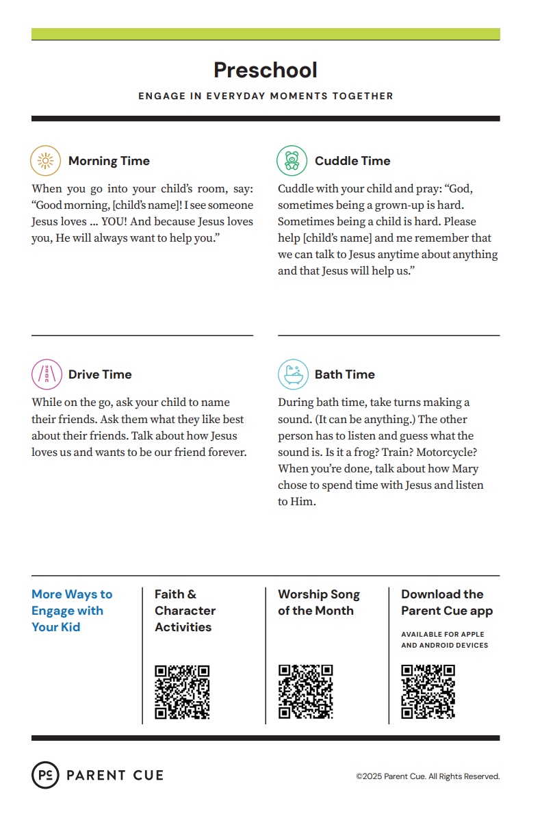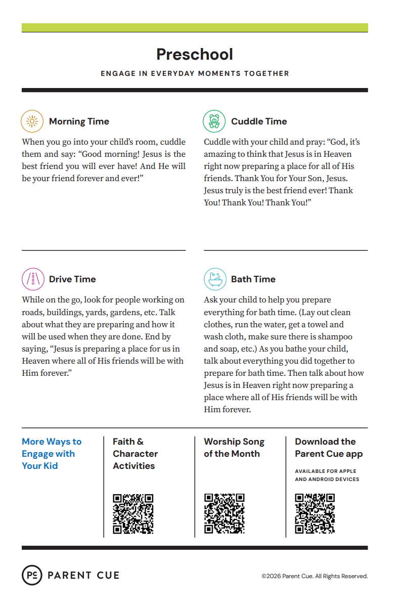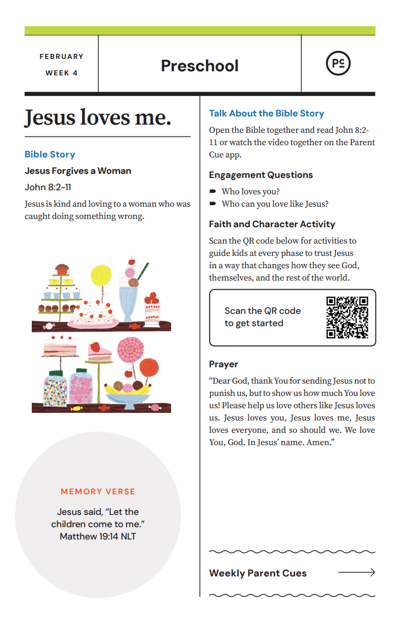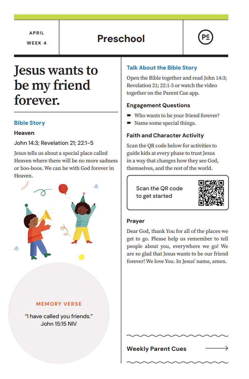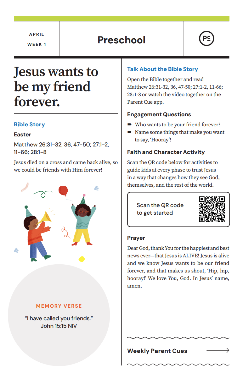 After you have completed the Check-In process & taken your child to his or her room, wave a quick good-bye & head into the adult worship service! As you know, it is common for little ones to cry when a parent leaves, and if this happens our volunteers will immediately engage your child in a toy or activity and ensure your child that you will return soon. If your child cries for an extended period of time or needs you for some reason, we will put your parent/guardian code on the top right hand corner of the auditorium screen!