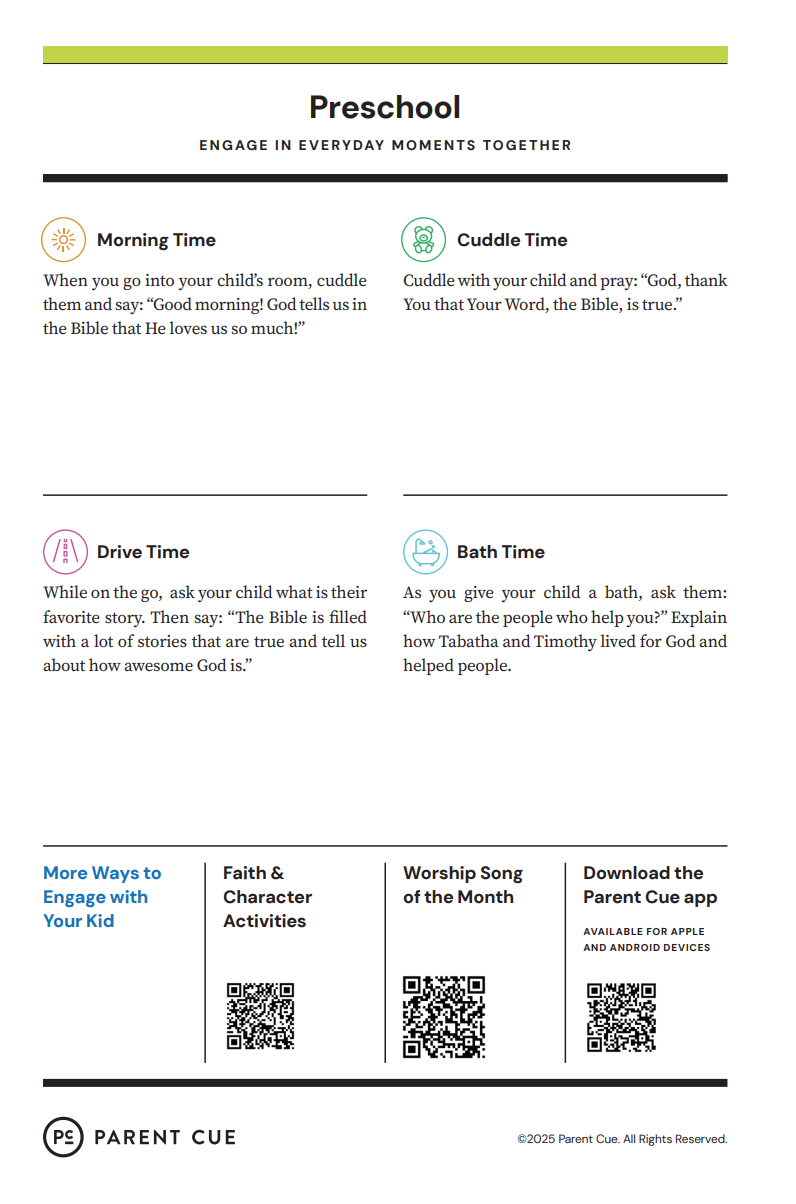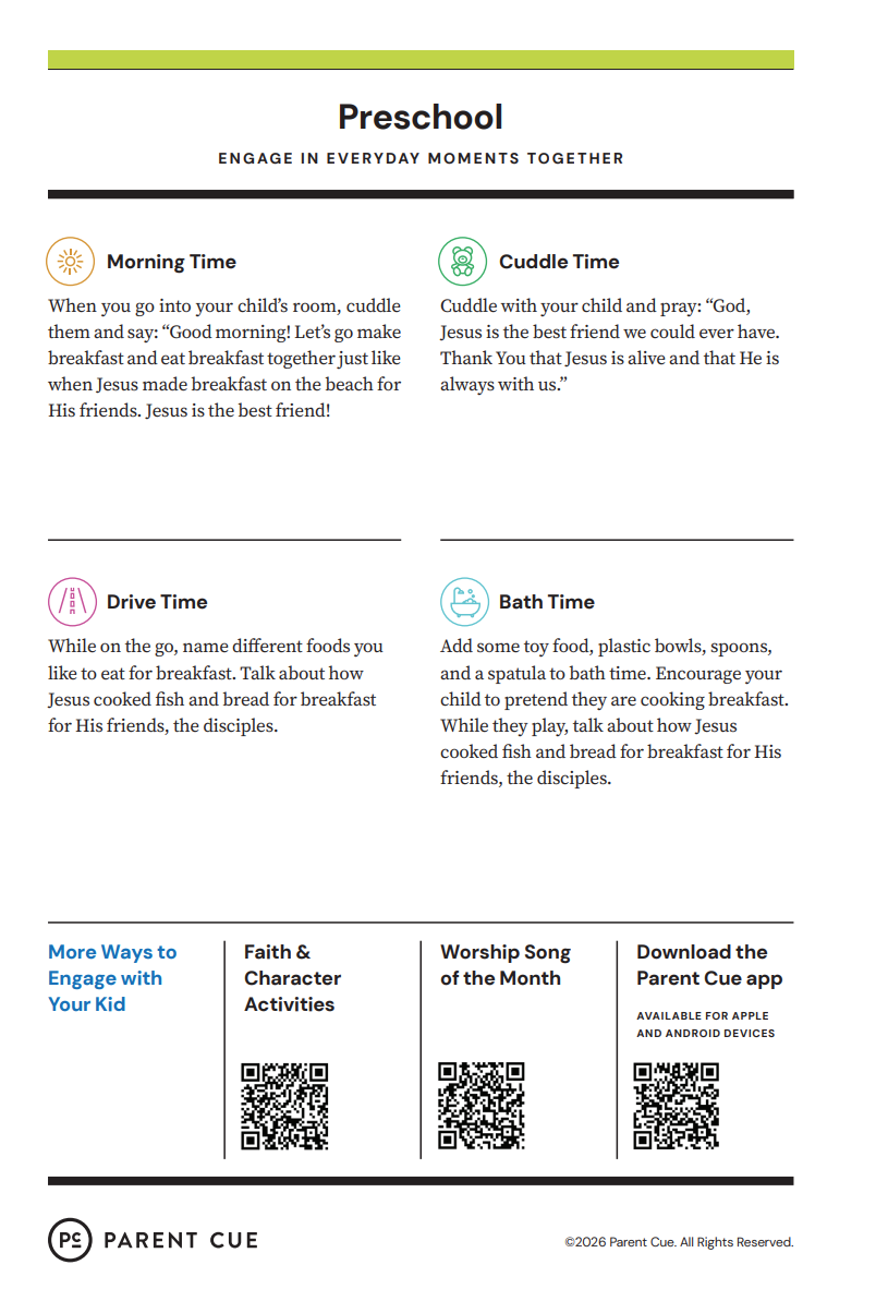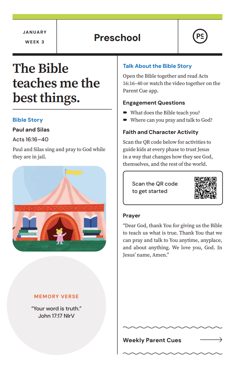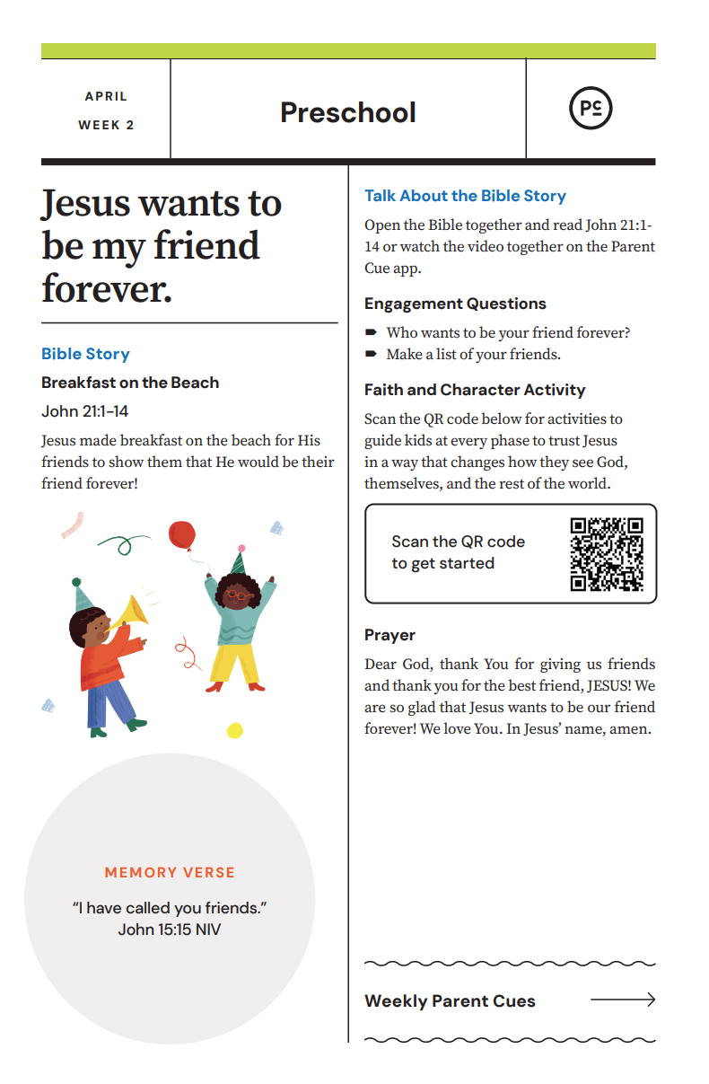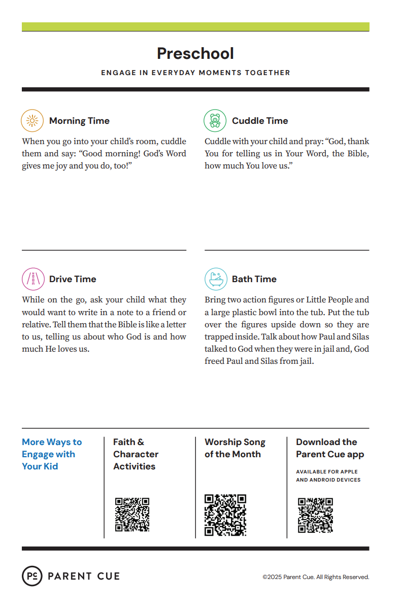 After you have completed the Check-In process & taken your child to his or her room, wave a quick good-bye & head into the adult worship service! As you know, it is common for little ones to cry when a parent leaves, and if this happens our volunteers will immediately engage your child in a toy or activity and ensure your child that you will return soon. If your child cries for an extended period of time or needs you for some reason, we will put your parent/guardian code on the top right hand corner of the auditorium screen!